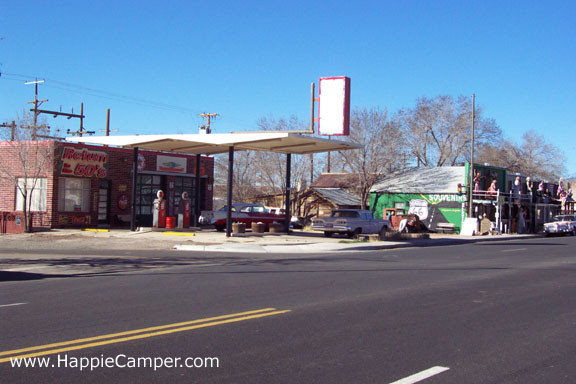 Back on the road, Route 66 to Kingman. Can you see the mirage of water on the road? Not many drive-ins out here.
